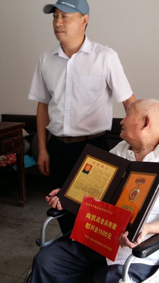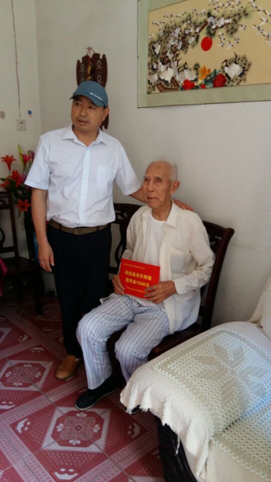 在全国上下隆重纪念中国人民抗日战争暨世界反法西斯战争胜利七十周年之际,为了表达对在七十年前那场波澜壮阔的抗日战争中同日军浴血奋战出生入死老战士的敬意,8月31日上午,公司董事长李玉中率副总经理、综合办等人员在县民政局、老干局领导的陪同下,对我县健在的14位抗日老八路、老英雄登门慰问,并给他们每人送去1500元慰问金。李董事长非常关心老战士们的健康,详细询问了解了他们的生活和身体状况,并祝老战士们健康长寿!董事长表示,要号召公司员工向抗日老战士学习,学习老战士们爱祖国、爱人民、不怕牺牲、无私奉献的崇高精神,在工作中做出成绩,以实际行动服务好家乡、服务好社会。