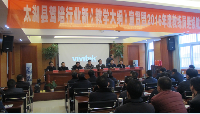 为了加强教练员队伍管理,提高教练员业务素质、道德素养和安全意识,提升驾培行业整体培训质量和服务水平。2016年12月18日,太湖县驾培协会新《教学大纲》宣贯暨2016年度教练员继续教育培训班在我校隆重举行。安徽省驾培协会秘书长束龙友、安庆市驾驶培训行业协会会长李承平、县运管所洪主任、我校石大明校长以及其他各驾校领导都出席了本次培训活动。四所驾校近二百名在岗教练员参加了此次培训课程。