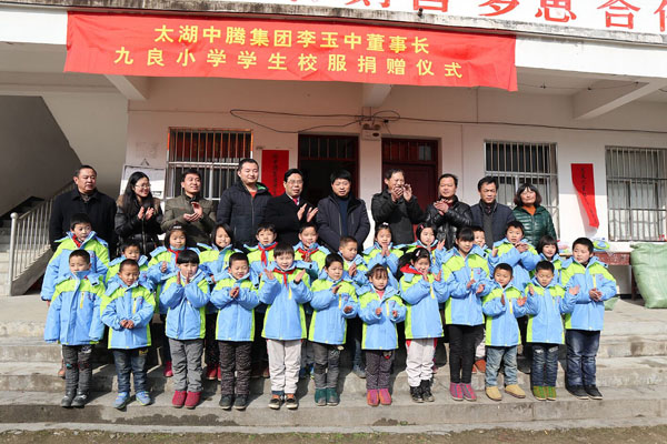 中腾集团公司董事长李玉中、总经理李斌先生一行满载着公司员工的一片深情厚谊,深入大山深处天华镇锦鸡村九良小学、平岭村平岭小学及部分村组访贫问苦,为143名贫困学生送上价值3万余元的过冬御寒新衣,为贫困家庭送上过年节日食品和慰问金。学生们天真的笑容无疑是这个冬日的一抹阳光,是那么的天真,那么的温暖。他的这一善举受到了当地政府、教育部门领导、学校师生、家乡父老乡亲的高度赞扬和好评。