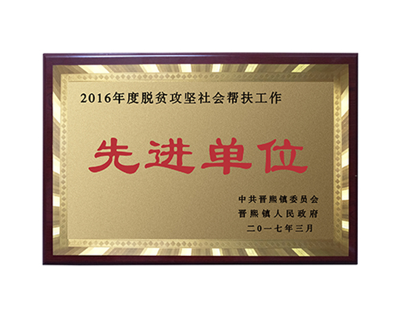 我公司一贯热心社会公益慈善,积极参与农村扶贫和村企共建,在3月18日晋熙镇全镇脱贫攻坚暨三级干部大会上,被授予晋熙镇“2016年度脱贫攻坚社会帮扶工作先进单位”。
