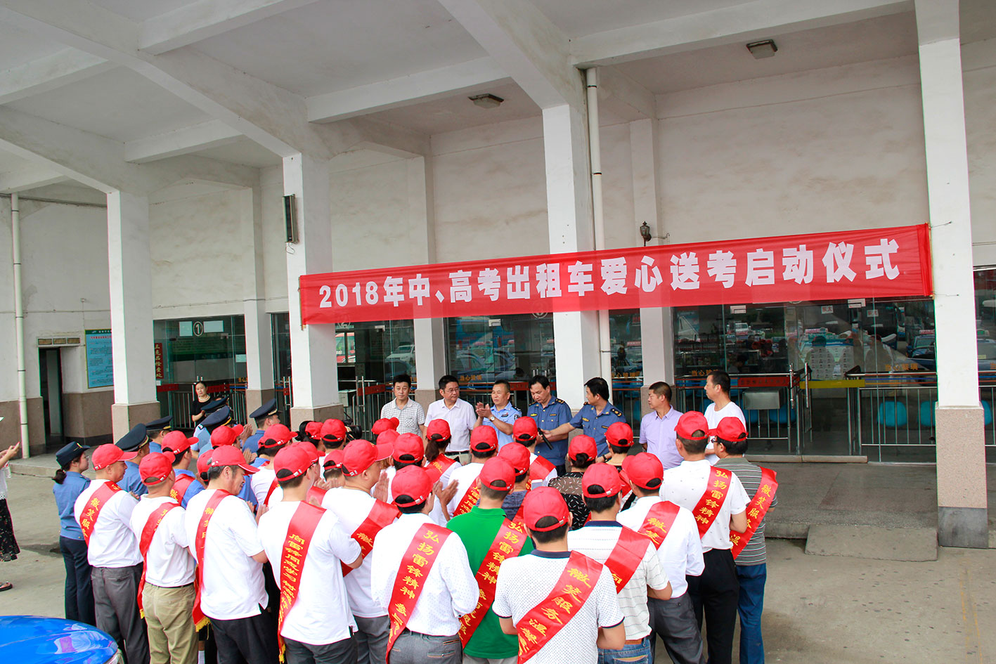 爱心送考仪式于6月4日下午在太湖县汽车站举行。为保障广大学子顺利到达考点,三家出租车公司共出动30辆出租车组成“爱心送考”车队,为太湖考生们保驾护航。