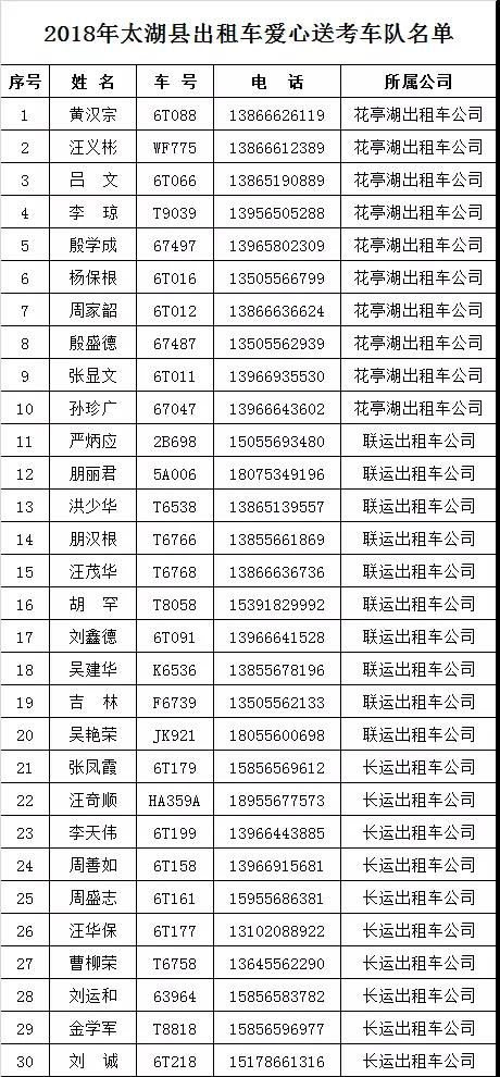 下附爱心送考车队名单: