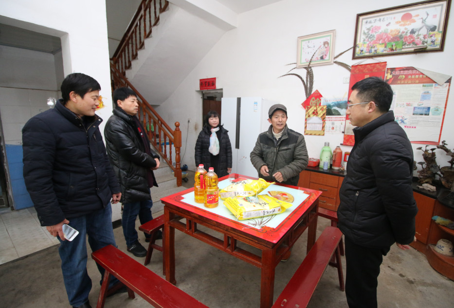 此次“送温暖”活动第一站来到了天华镇敬老院,看望敬老院的老人们,给他们送上慰问金和慰问品,并祝愿他们新春快乐、阖家幸福。随后,董事长李玉中一行来到公司的结对帮扶村——弥陀镇田家村,再次给田家村送来帮扶资金2万元,并给当地田家村小学捐赠了价值四万元的体育器材。随后在村里领导的陪同下分别走进五户生活困难的村民家中,送去集团公司的关爱、温暖和新春祝福。李玉中既是中腾集团公司董事长也是太湖县摄影家协会会长,他还带领摄影家协会会员们到界岭村与贫困户们座谈慰问,送上米、油慰问品及慰问金。