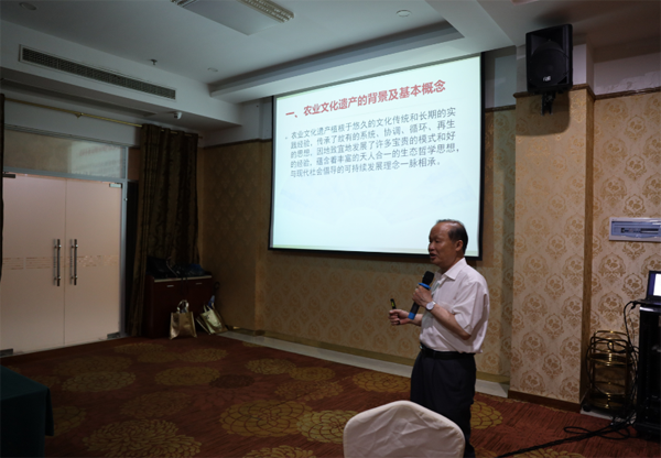 下午在汇通酒店会议室专题调研会上,农业农村部农业文化遗产专家委员会副主任、中国农业博物馆研究员、博士生导师曹辛穗主讲了农业文化遗产申报和管理、农业文化遗产与乡村振兴等方面的专业知识,并同与会人员一起观看了第五届全球国际农业文化遗产集锦和集团公司位于晋熙镇的花亭原乡、天华镇的百罗湾等农业发展基地视频。